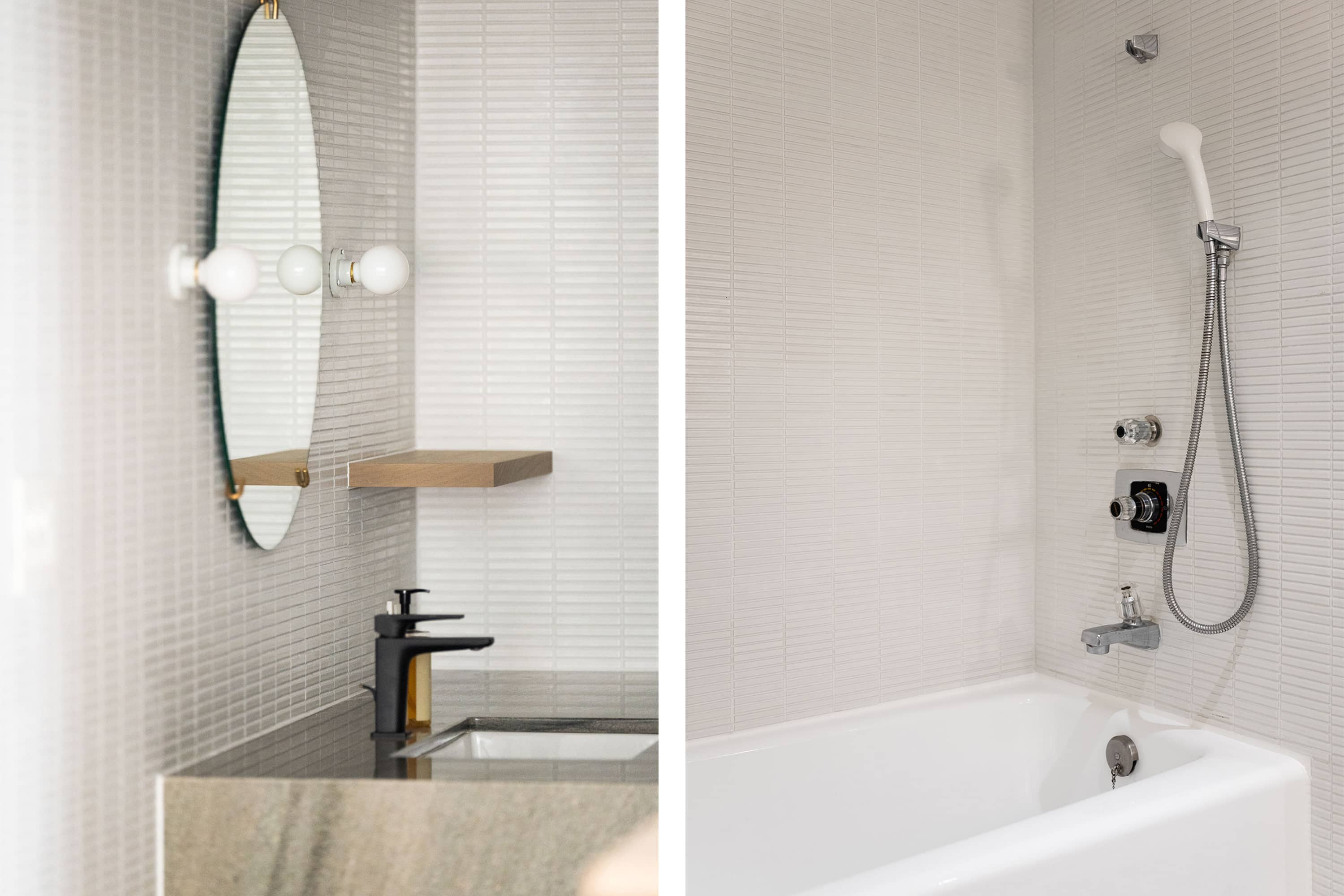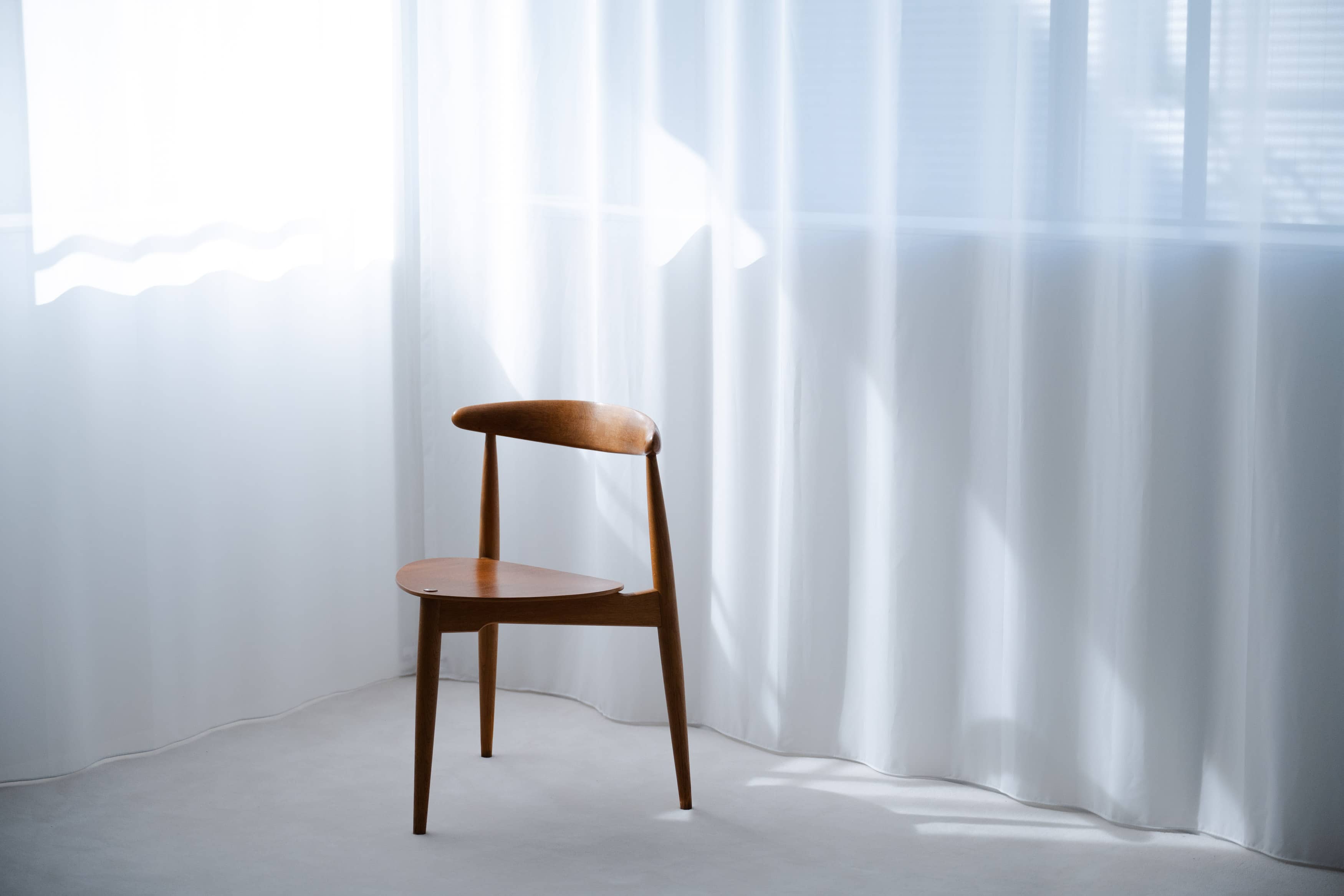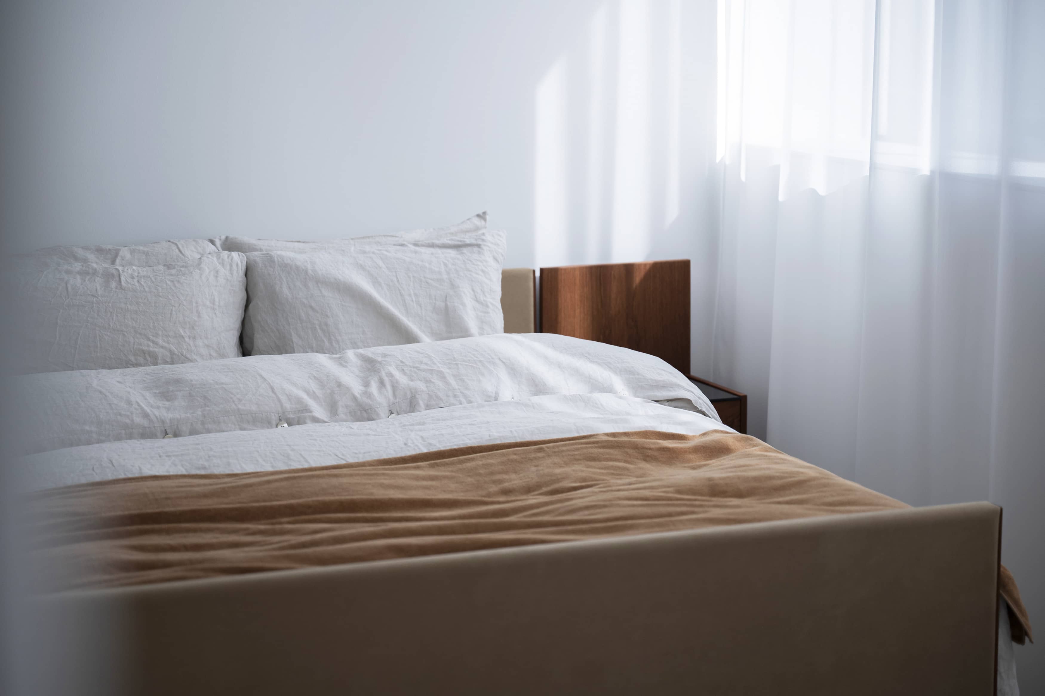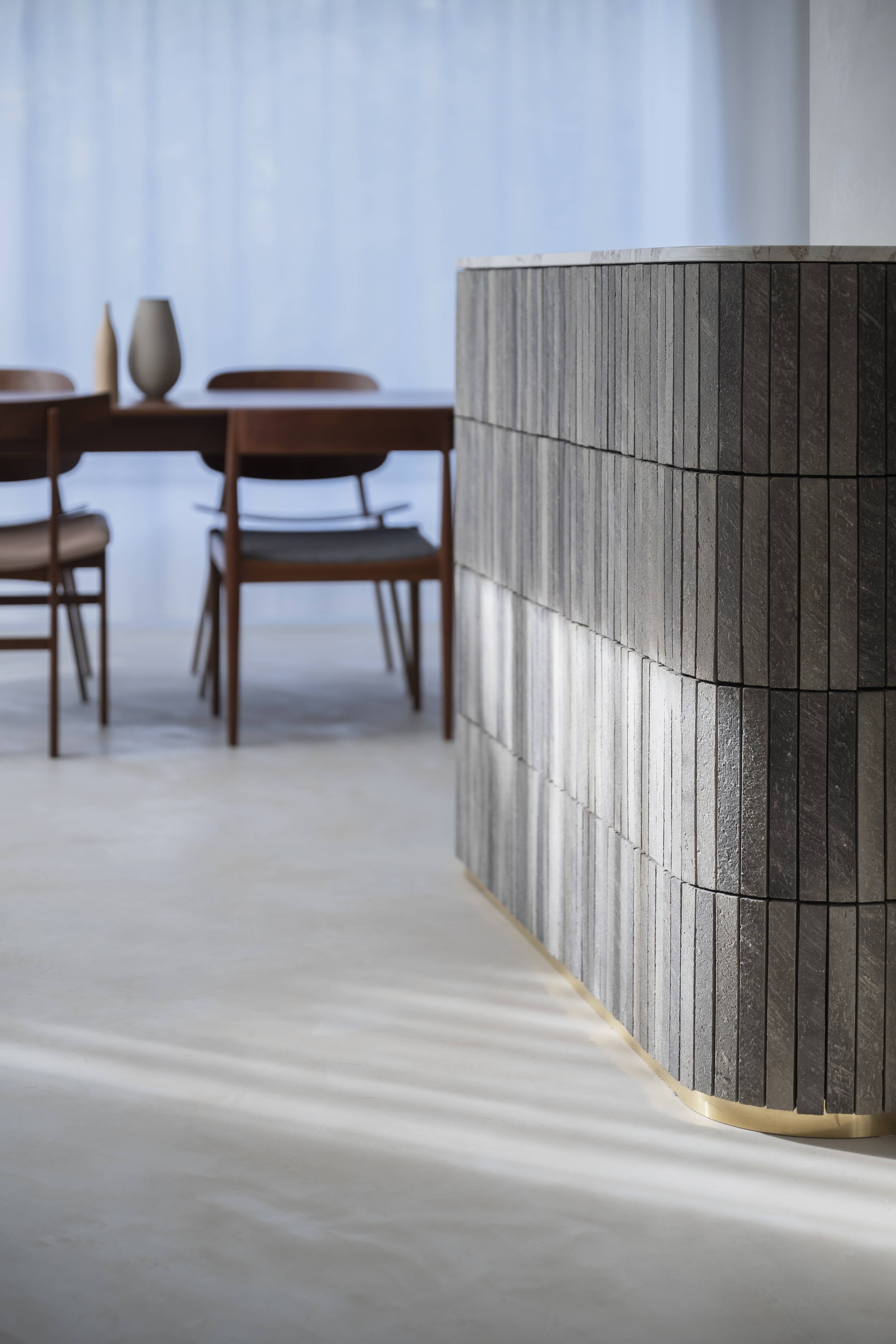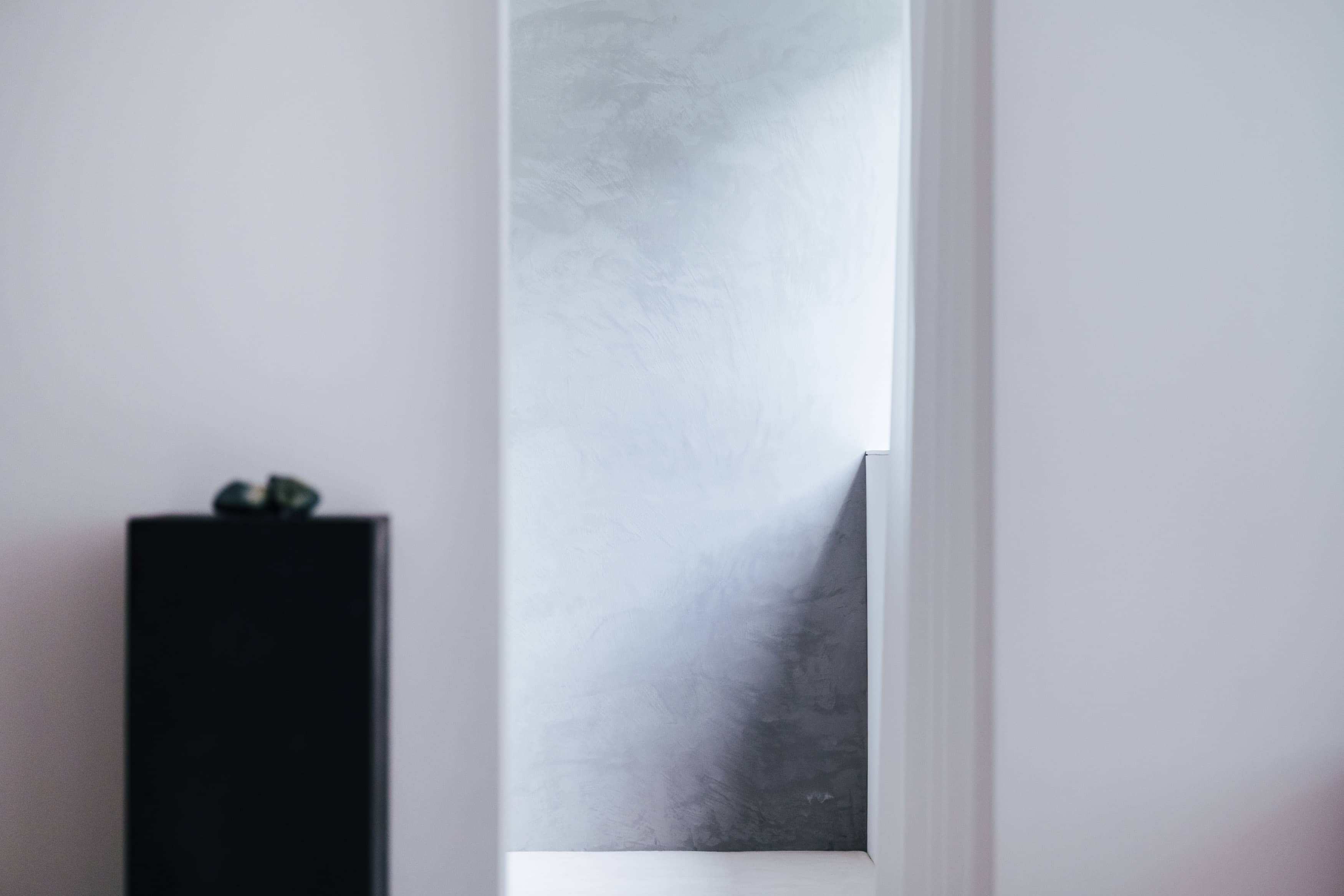 光の反射を極力抑えた壁や床の質感と、厳選されたヴィンテージ家具、広さを活かした余白とのバランスに、